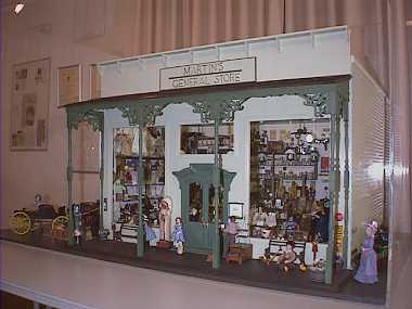 綾ミニチュアワールドに入館して、まず目に飛び込むのは、マーチンコレク ション「マーチン雑貨店」。 とても大きな作品で、幅が1mもあろうか。周囲の小物を含めてガラスケース に納められています。 ハウスの大きさもさることながら、中にある小物には、圧巻です。 1Fには、その他にも、ミニチュア家具が展示されており、一部は販売され ています。 |